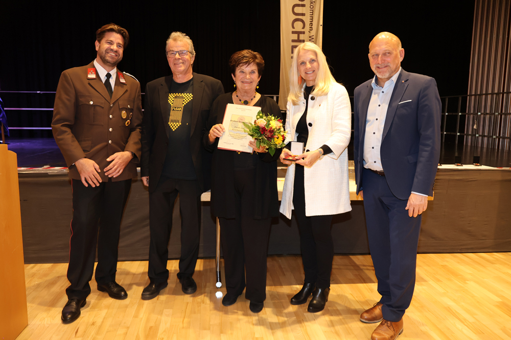Am 25. Oktober 2025 hat unsere Chorleiterin Andrea Engelberger für ihre langjährige Tätigkeit die Ehrenmedaille der Gemeinde Puchenau in Gold erhalten.