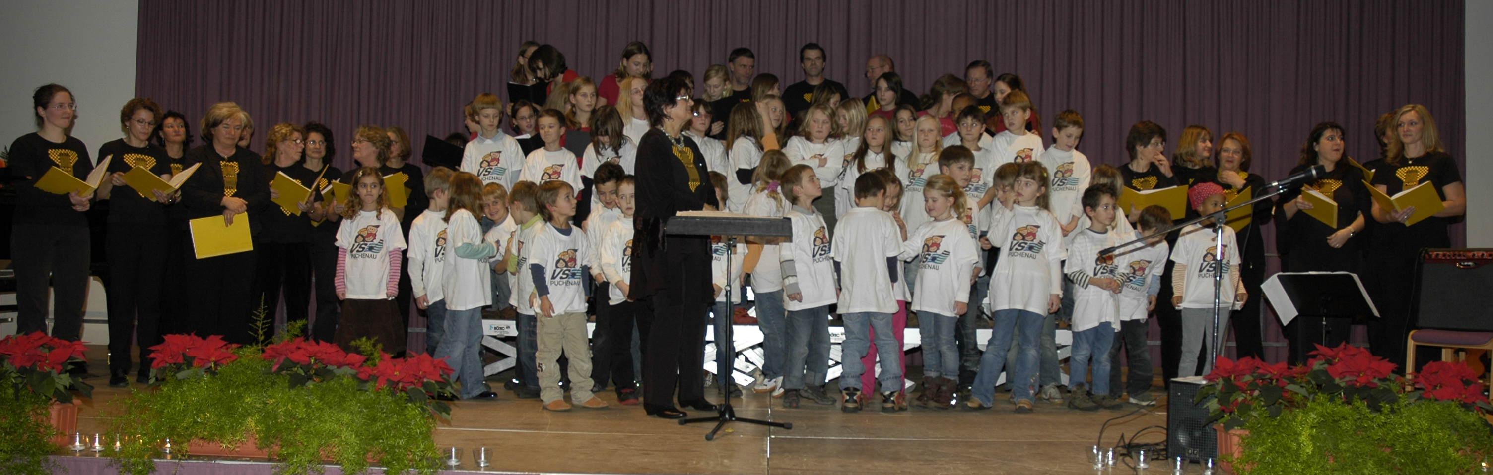 25 Jahre Vokalensemble MOSAIK 1983 - 2008 (Durch Klicken auf ein Bild erhält man die große Version) Zurück zum Beginn des Adventkonzertes am 8. Dezember 2007... Sommer 2007... Im Jugendensemble "YoungStars" singen auch ehemalige Donauspatzen mit. Nun standen alle Chöre gemeinsam auf der Bühne.