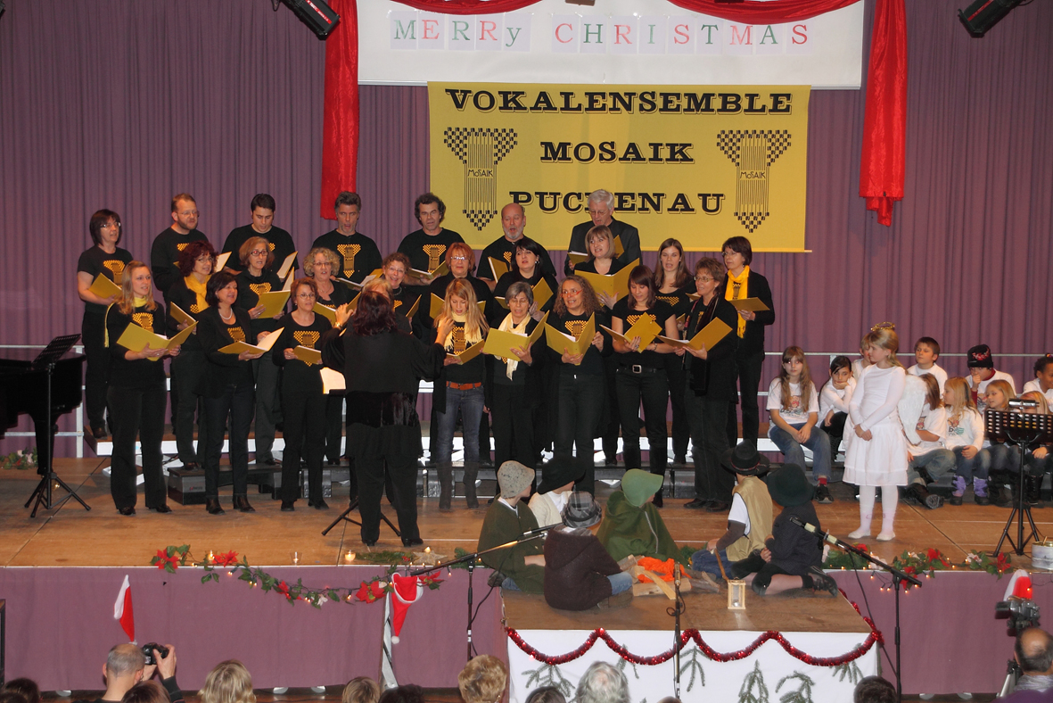 Puchenauer Adventkonzert am 5. Dezember 2010 Ein Hirtenspiel darf bei einem Adventkonzert nicht fehlen. Heuer gab es zwei Teile - einen traditionellen und einen modernen. Vom MOSAIK-Quartett gab es zwei Arrangements von Carsten Gerlitz zu hören. ... weiter zum Internationalen Adventsingen