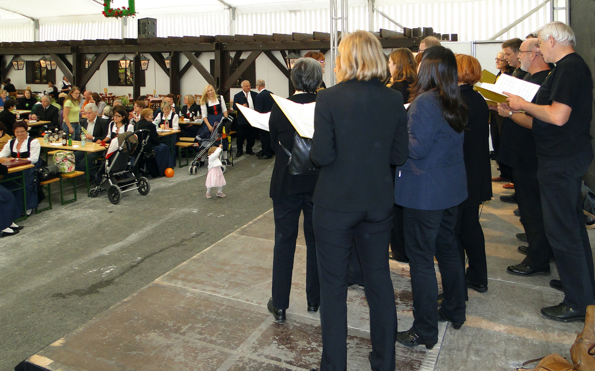 Später wartete eine andere Herausforderung auf uns - das Singen in einem Restaurantzelt ohne Verstärkeranlage.