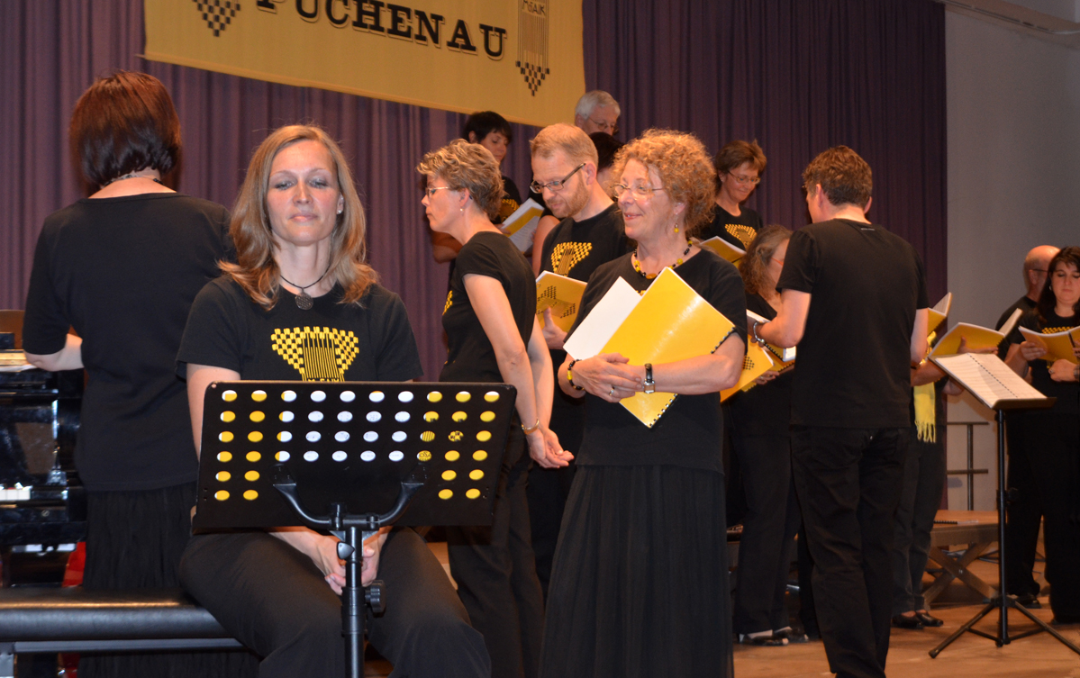 Der Wiener Chorleiter Manfred Länger, er "komponiert verrückte Kompositionen für ebensolche Chöre", hat schon 64 Ausreden, nicht in einem Chor zu singen, gehört. Wir lassen aber höchstens zwei gelten: 25. "Ich kann leider nicht singen", und 64. "Ich würde ja liebend gerne, aber leider bin ich rhythmisch völlig untalentiert". Zum Lied "Sway" (Quien Será) bietet es sich an, bei einer Instrumentalstelle zu tanzen. Der 2. Teil des Konzertes begann mit neuen, wenig bekannten afrikanischen Liedern. Am Schluss führten wir ein größeres Werk auf, das "Gospel Magnificat" von Robert Ray, das auch der Höhepunkt unseres Auftrittes bei der Langen Nacht der Kirchen werden sollte. Unsere Gäste, die uns bei diesem Konzert unterstützt haben: Andreas Falkner am Klavier, Thomas "Ossi" Undesser auf der Trompete, Eva Moherndl auf der Djembe, Thomas Engelberger am Schlagzeug, und Ibou Mane hat getanzt. MOSAIK-Sängerinnen und Sänger beim Konzert ...