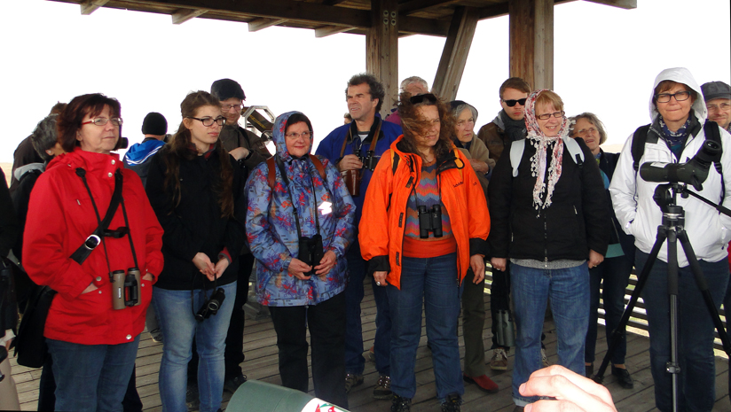 Mit den Spektiven und den Ferngläsern ließen sich die Graugänse und anderen Vögel aus der Entfernung beobachten.