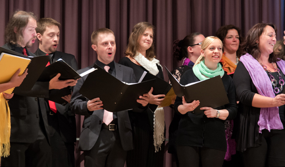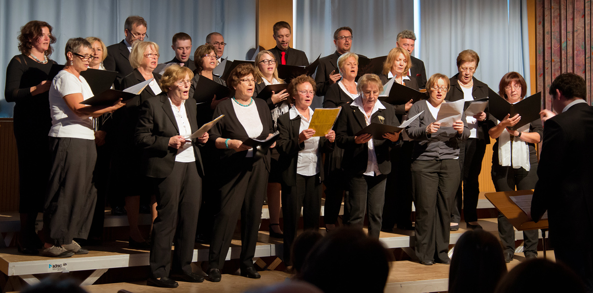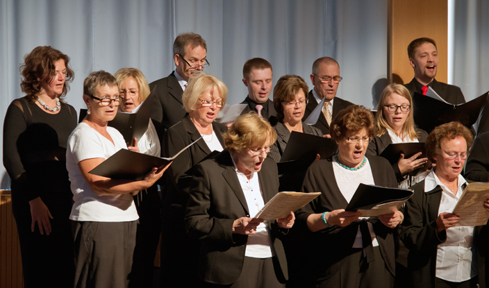 Vor der großen Pause präsentierte das Vokalensemble MOSAIK weitere Facetten seines Repertoires: ein englisches Madrigal (Fair Phyllis), eine Filmmusik (Lenas sång), ein Jazz-Arrangement (Mas que nada) und ein von Helmut Gugerbauer für uns komponiertes Geburtstagslied.