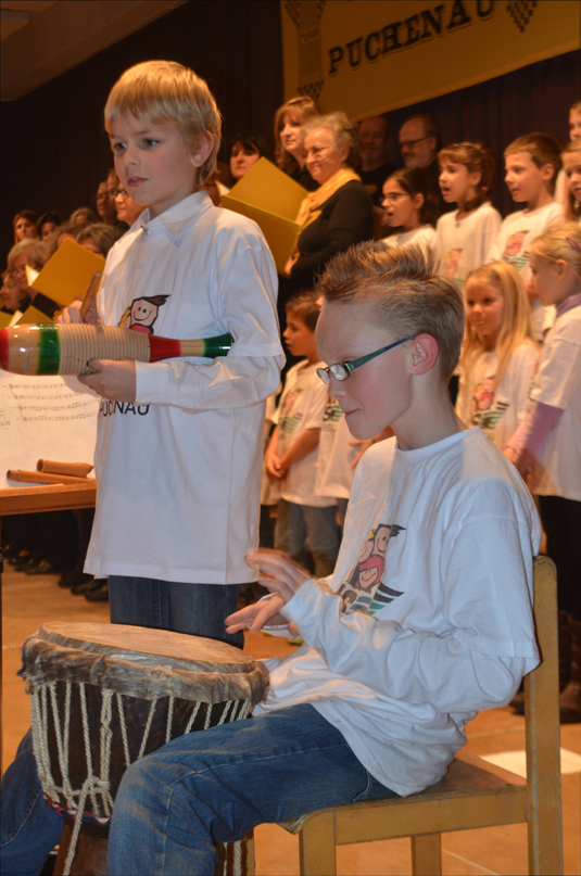und jungen Instrumentalisten aus der Musikklasse 2M mit dem gemeinsam vorgetragenen "Kinder tragen Licht ins Dunkel".