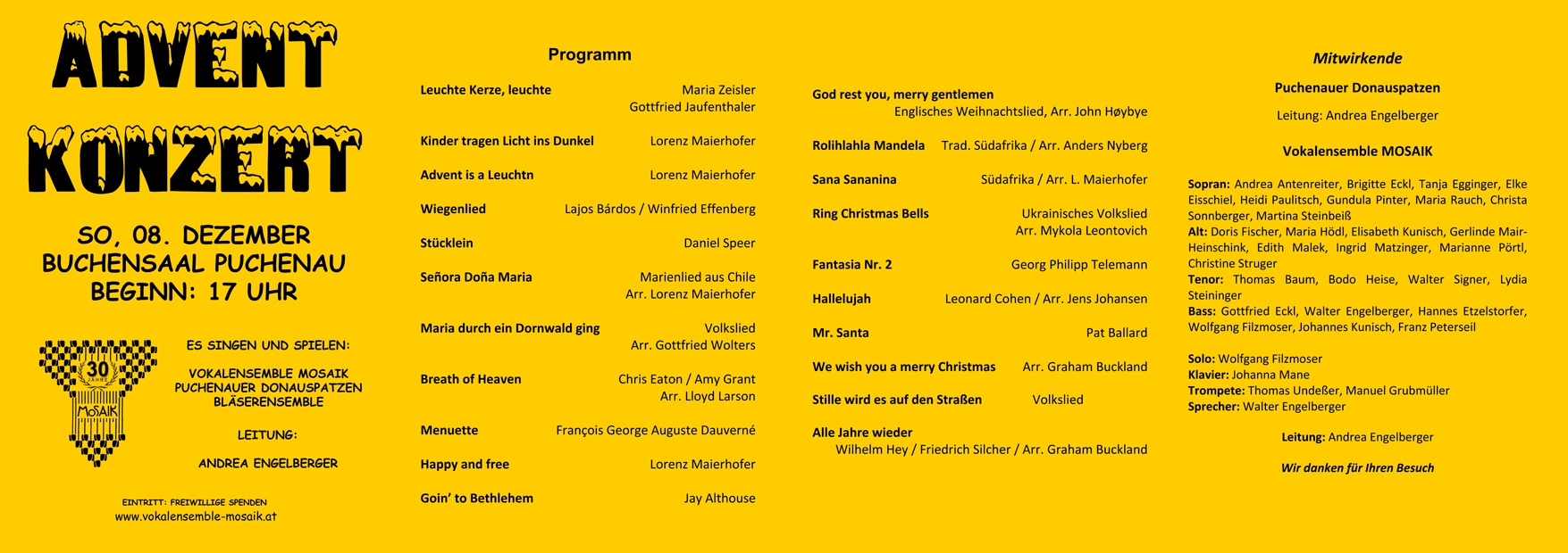 Adventkonzert am 2. Adventsonntag, 8. Dezember 2013, 17 Uhr Buchensaal Puchenau