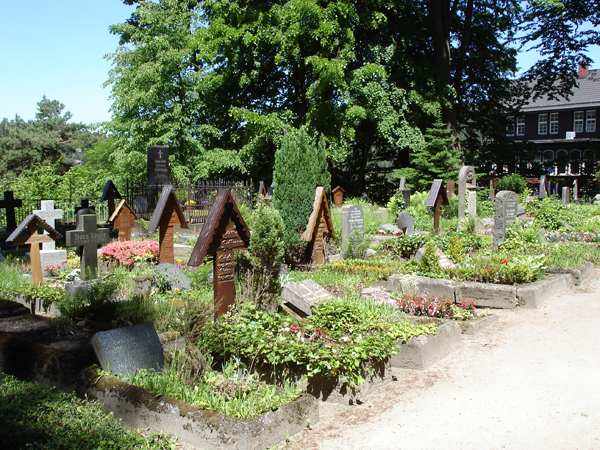 Bergfriedhof und Blick auf den Kurort Oybin.