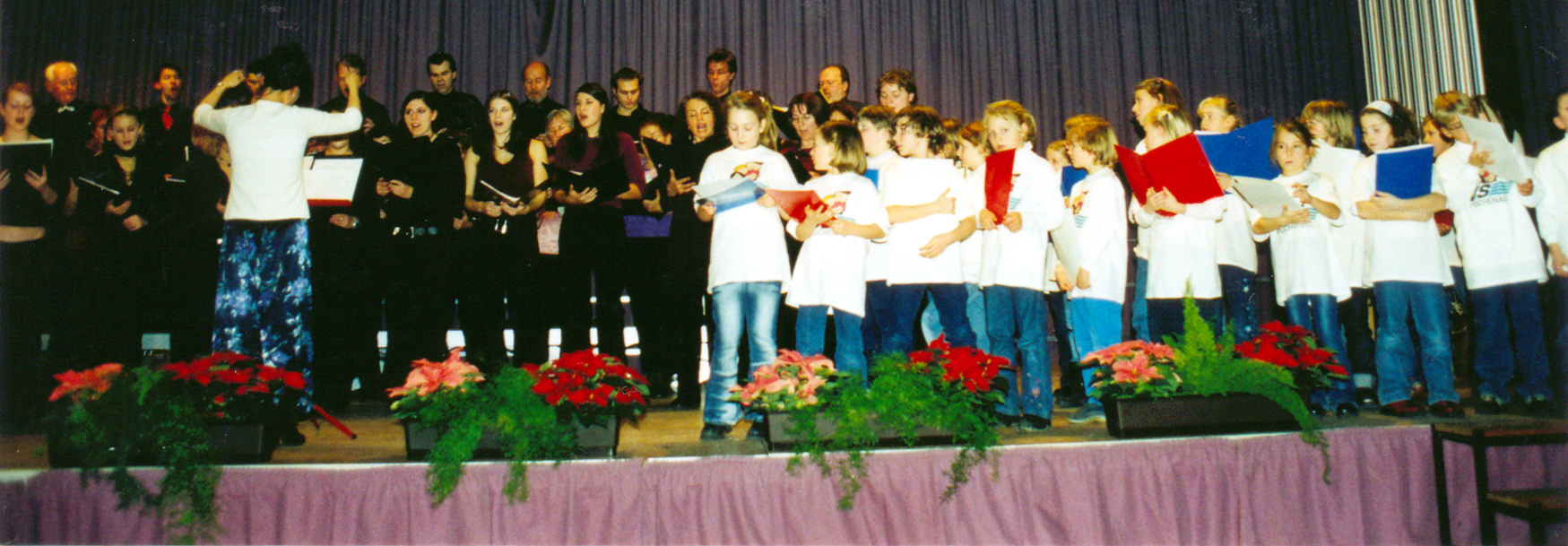 25 Jahre Vokalensemble MOSAIK 1983 - 2008 (Durch Klicken auf ein Bild erhält man die große Version) Im Sommer 2002 durften wir noch einmal die ungarische Gastfreundschaft genießen. Wir verbrachten unvergeßliche Tage in Miskolc, zwei Thermalbädern, darunter dem "ungarischen Pamukkale" (Hungarian Pamukkale) in Egerszalók, einer CO2-Mofette und bei einer ungarischen Fischsuppe mitten im Wald. Zu unserem Adventkonzert 2002 stand das Vokalensemble MOSAIK gemeinsam mit dem Jugendensemble und den Puchenauer Donauspatzen auf der Bühne. Im Frühjahr 2003 wirkten wir bei einer Aufführung der Matthäus-Passion von Georg Philipp Telemann in unserer Pfarrkirche mit. Ein schwieriges Werk, bei dem wir viel gelernt haben. Zum 20jährigen Jubiläum im Sommer 2003 dirigierte Hans Baumgartner nochmals einige Lieder, die wir mit ihm gelernt hatten. Bei den anderen half er uns als Tenorsänger aus.